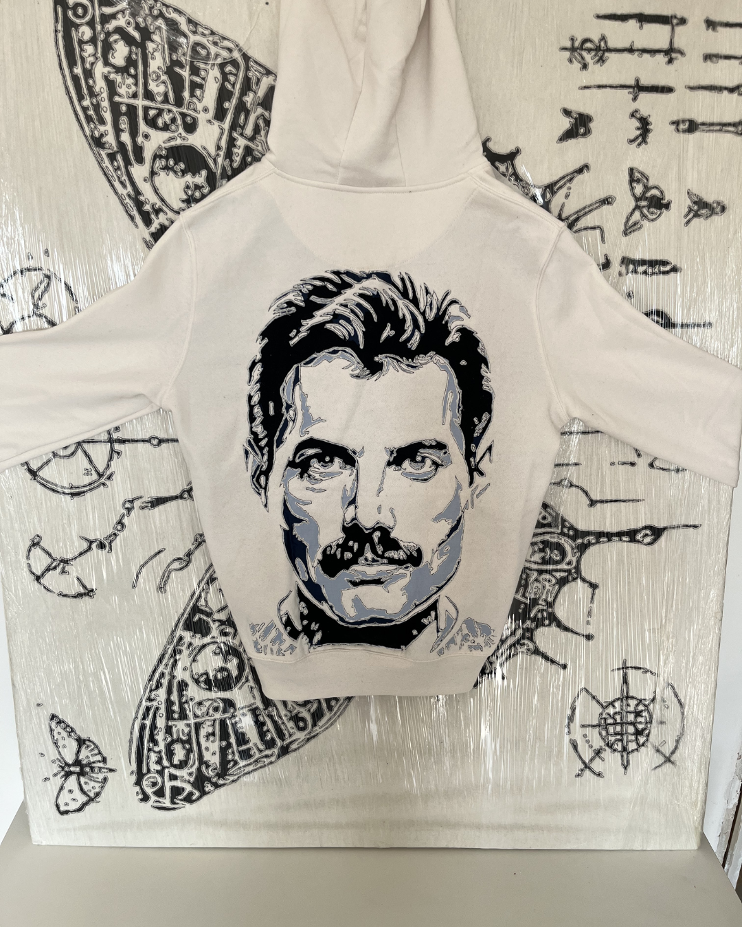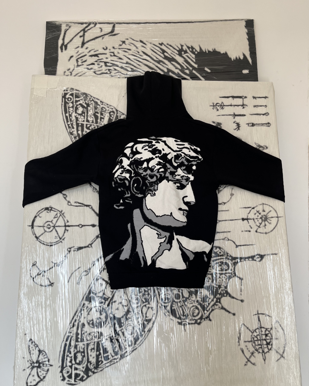 Ogni felpa, messa al rovescio, riceve uno strato interno di tessuto, fissato a mano