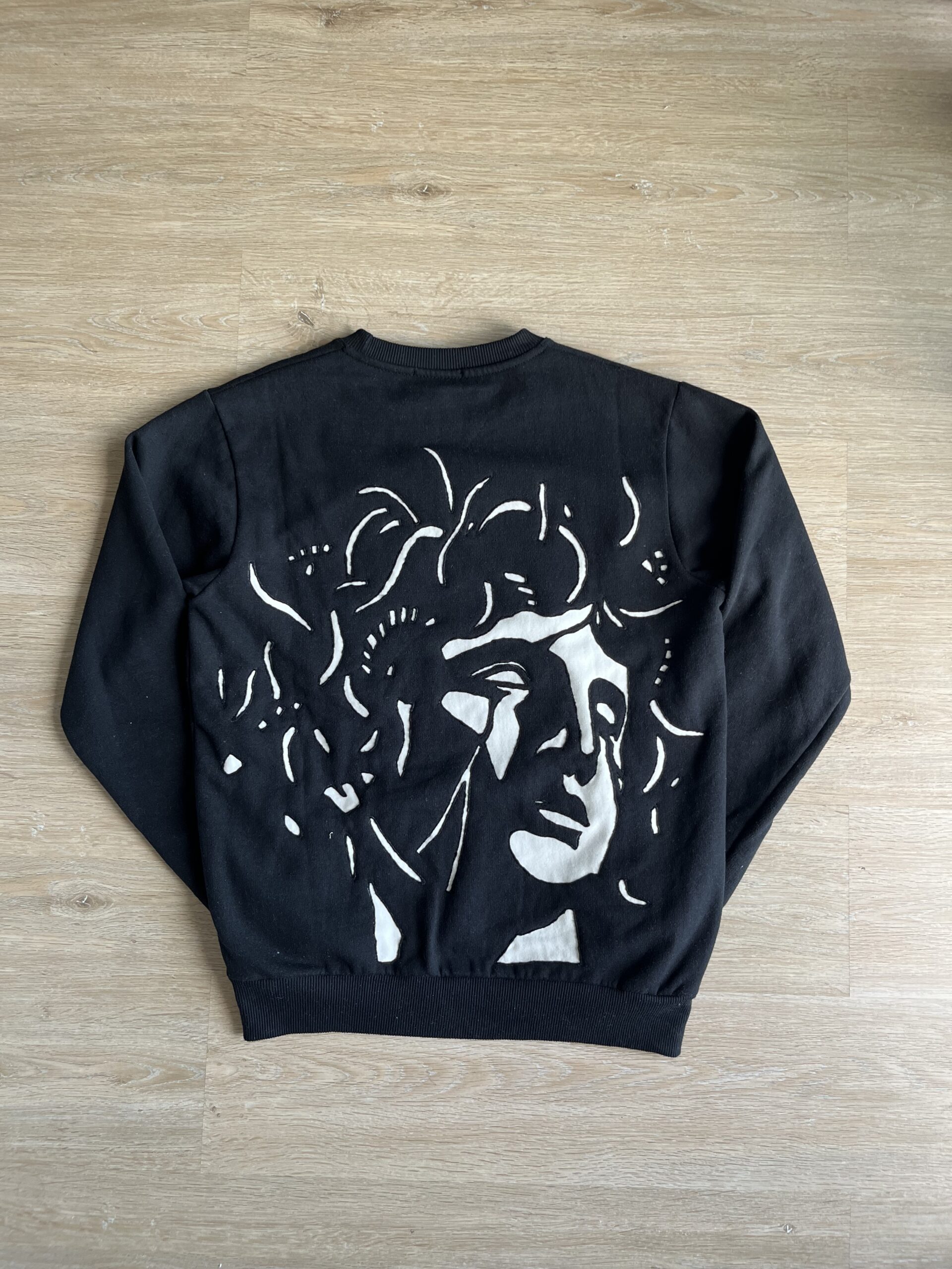 Felpa intagliata nel tessuto — senza inchiostro, senza stampe.