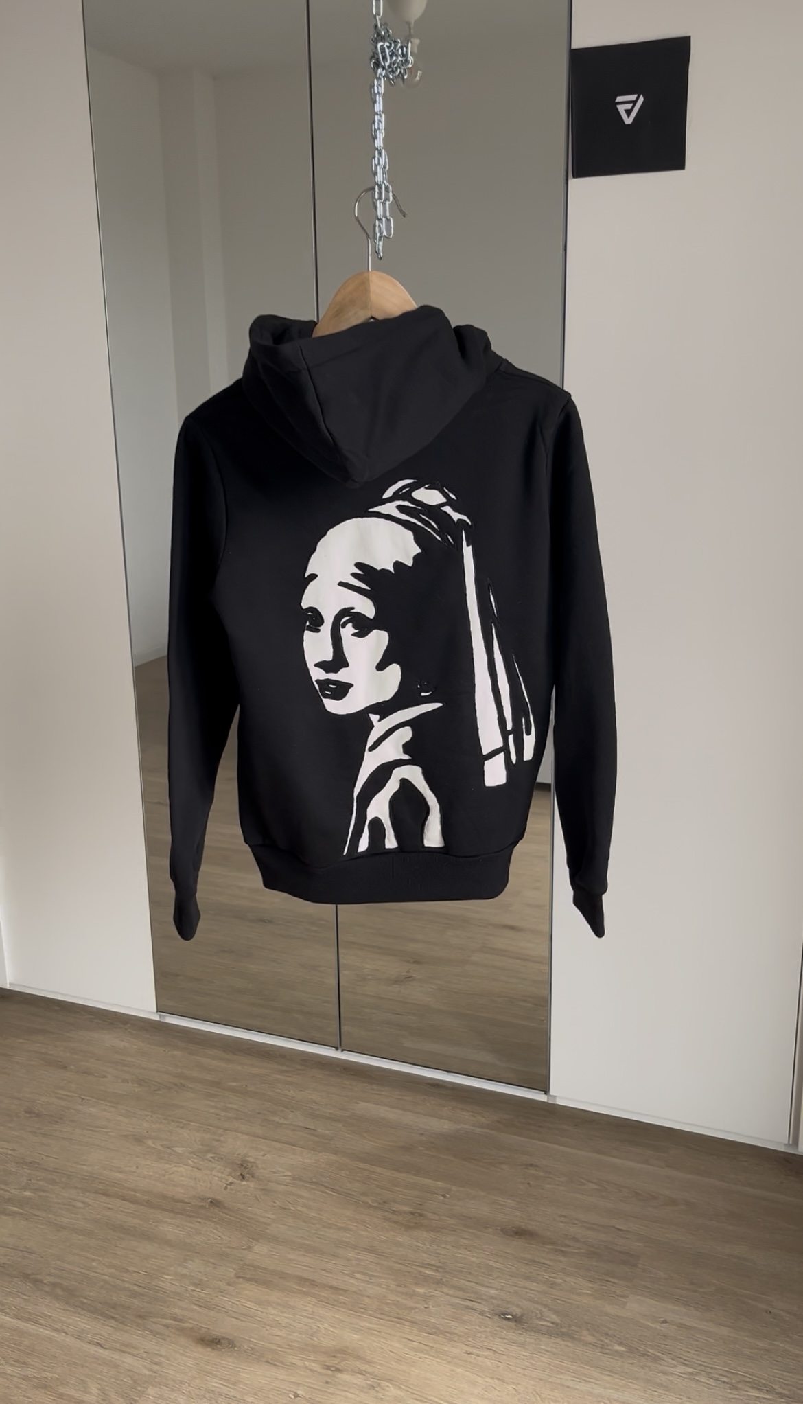 Iconic painting by Johannes Vermeer, featuring a young girl with a captivating gaze, wearing a striking pearl earring and a turban. Known for its delicate lighting and subtle elegance.